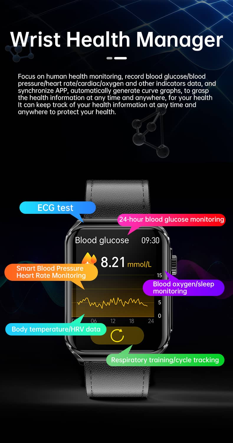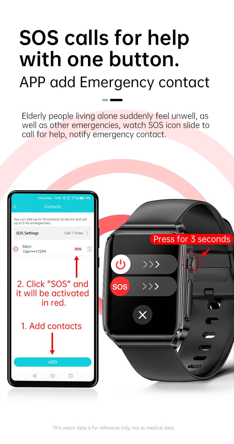 Monitor your Blood Concentration to detect any potential issues with your blood glucose levels, such as diabetes.SOS calls for help with one button.