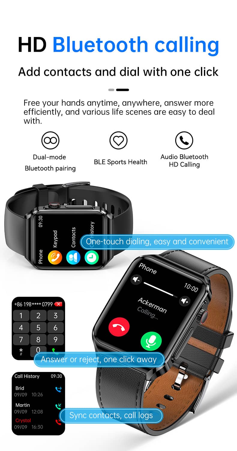 Syncs seamlessly with both IOS and Android - no matter what phone you use, we got you covered.1.85-inch high-definition touch color screen.Built-in NFC access control system, easyto travel, unhindered.