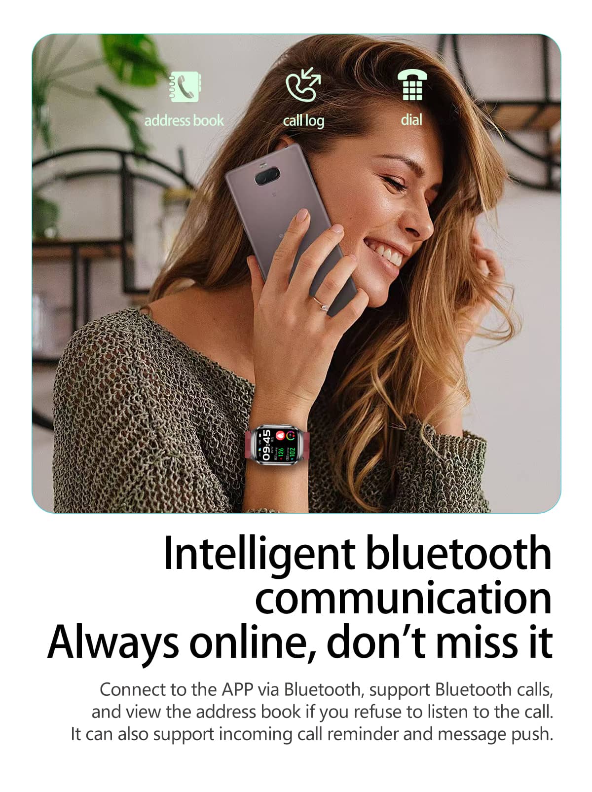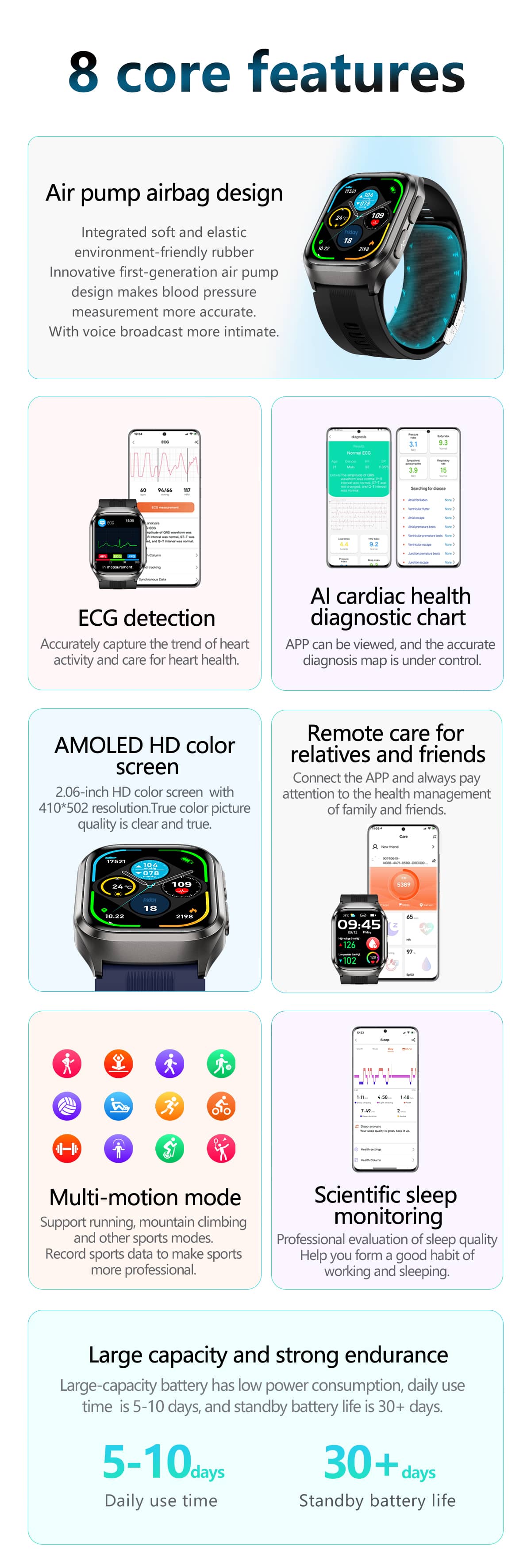 Syncs seamlessly with both IOS and Android - no matter what phone you use, we got you covered. 2.06-inch AMOLED HD color screen.