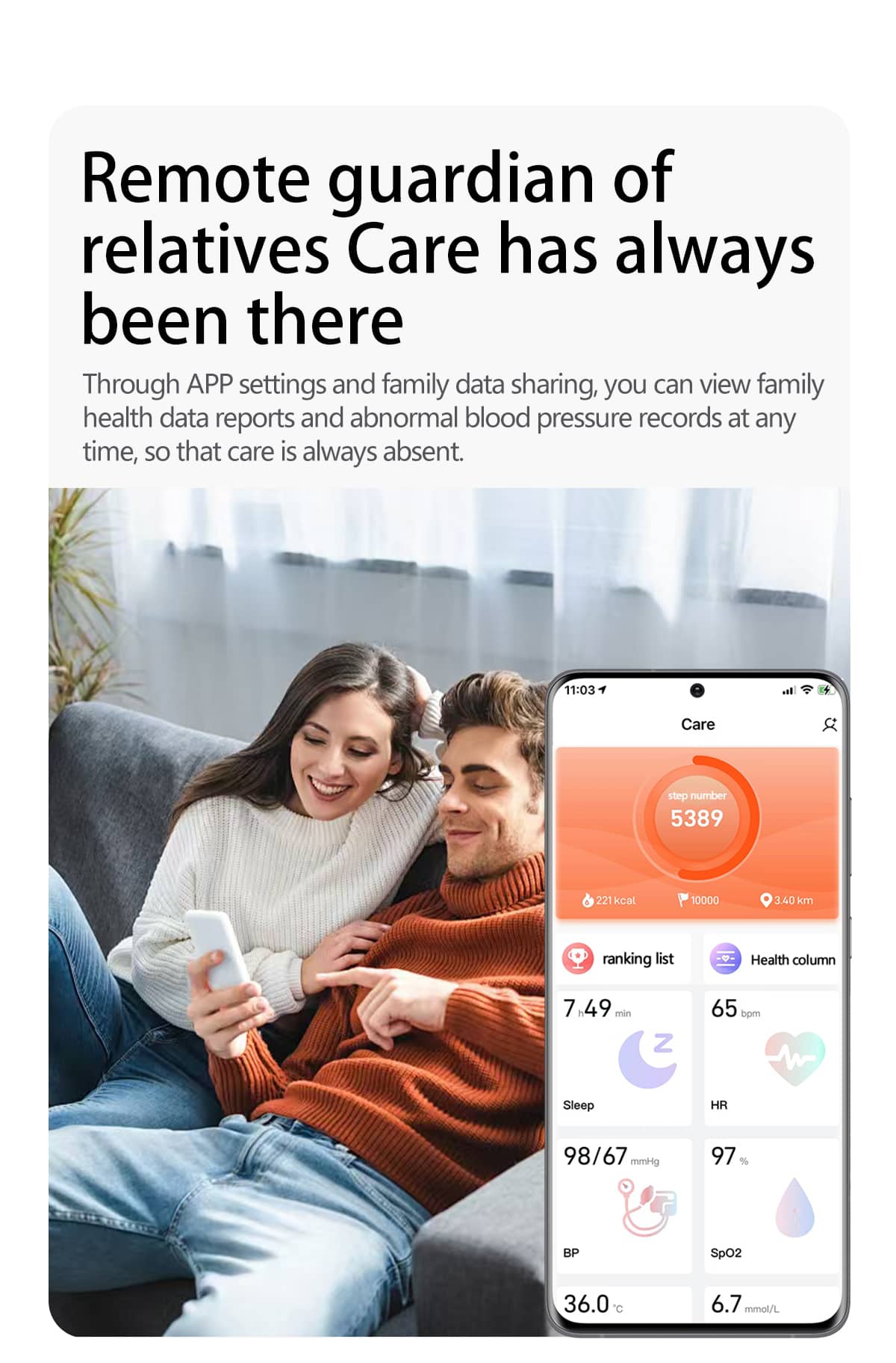 Smart blood oxygen monitoring, professional-grade bio-sensing chip, independent blood oxygen saturation SPO2, make sure blood oxygen measurement more accurate.