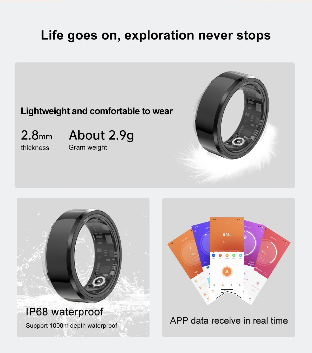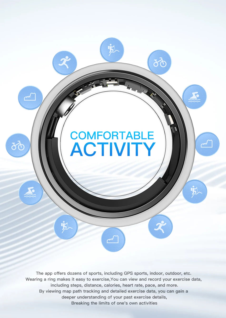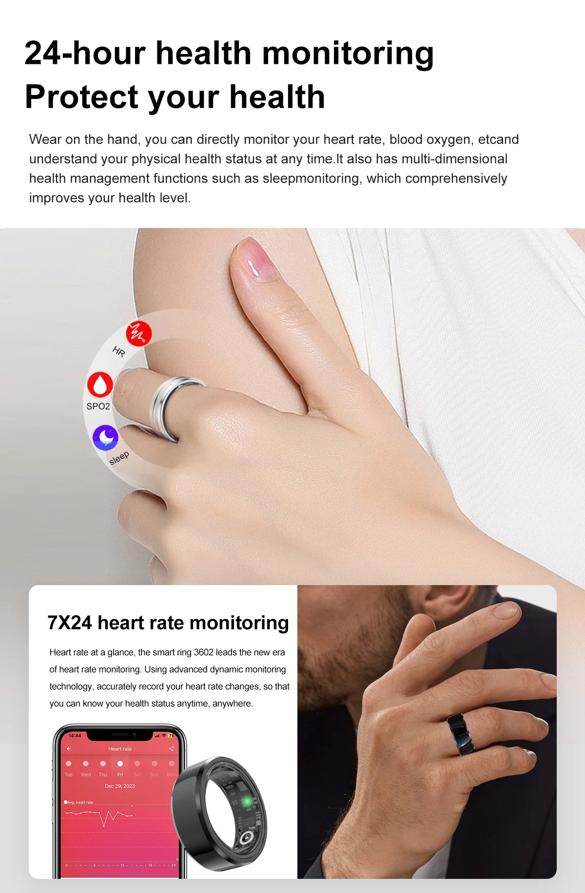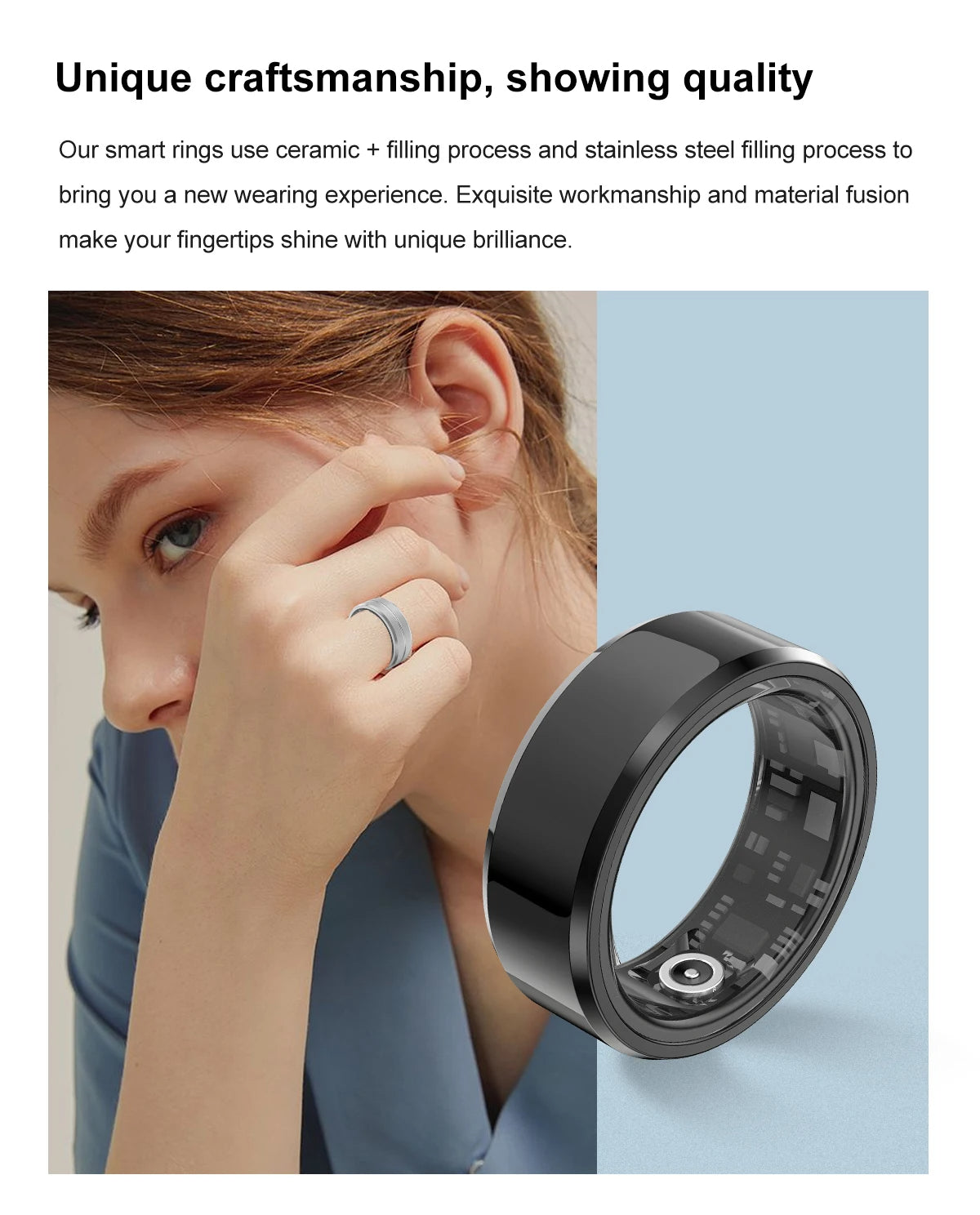 STYLISH AND LIGHTWEIGHT : Fashionable and functional, ours ring is designed to be worn with any outfit. Its sleek, lightweight profile ensures comfort and style, making it a perfect fitness ring for both smart rings for women and smart rings for men.It's not just a handy health gadget, but also a perfect match for your daily outfits.