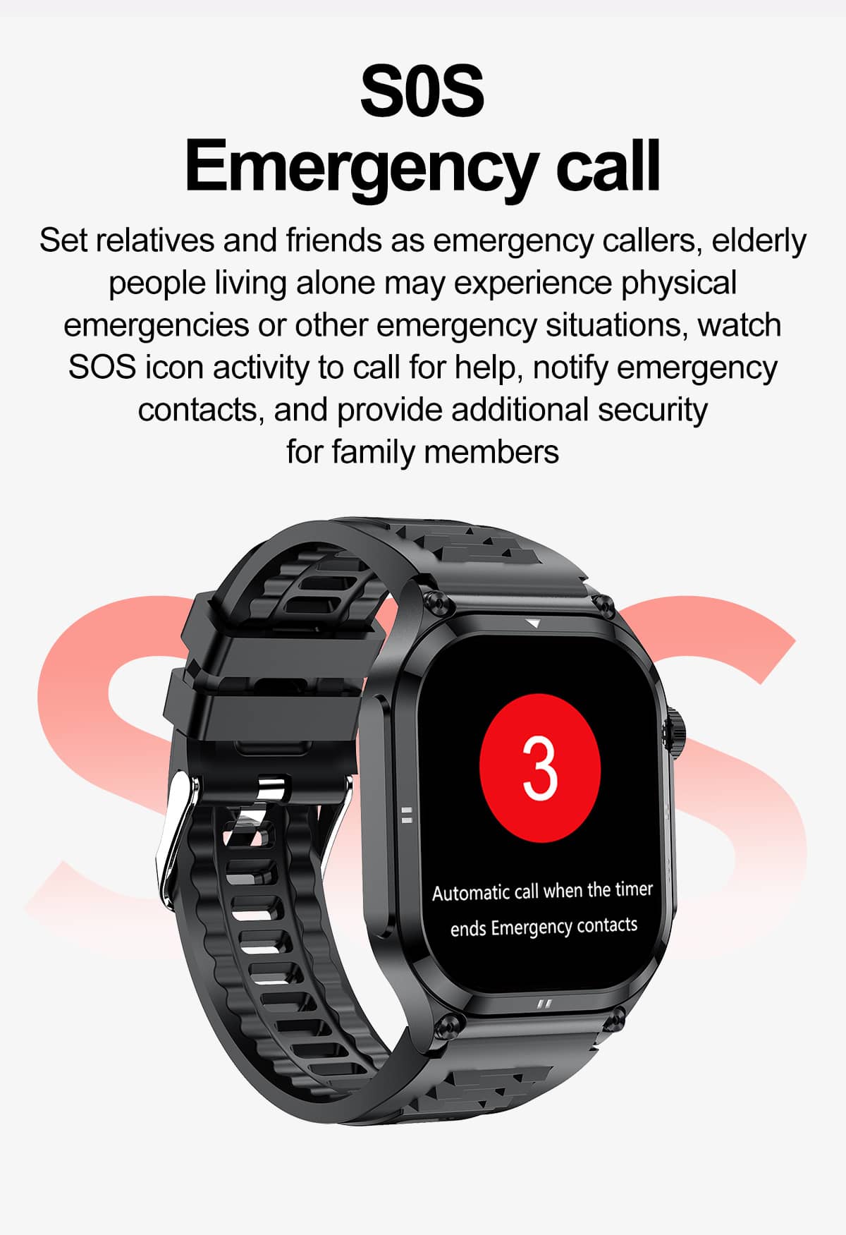 ️ Respiration Rate Monitor allows you to track your breathing patterns, detect any potential issues with your respiratory system, and take appropriate action to avoid any health complications.S0S emergency call function