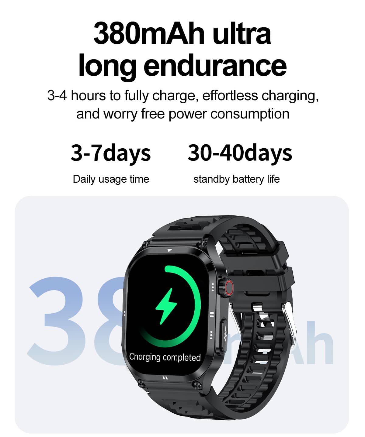 Long Lasting Battery Life- 7 days Daily Use and 30 Days Standby Time depending on usage