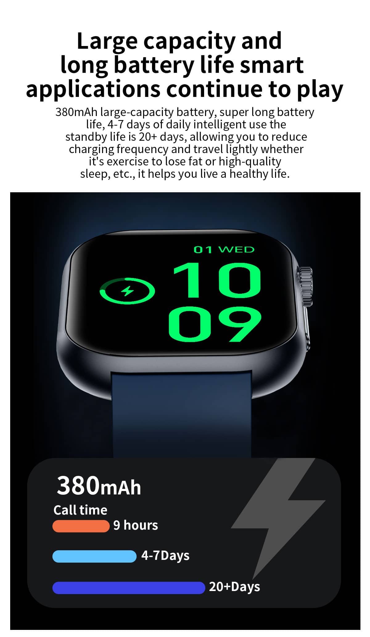Long Lasting Battery Life- 7 days Daily Use and 20 Days Standby Time depending on usage.