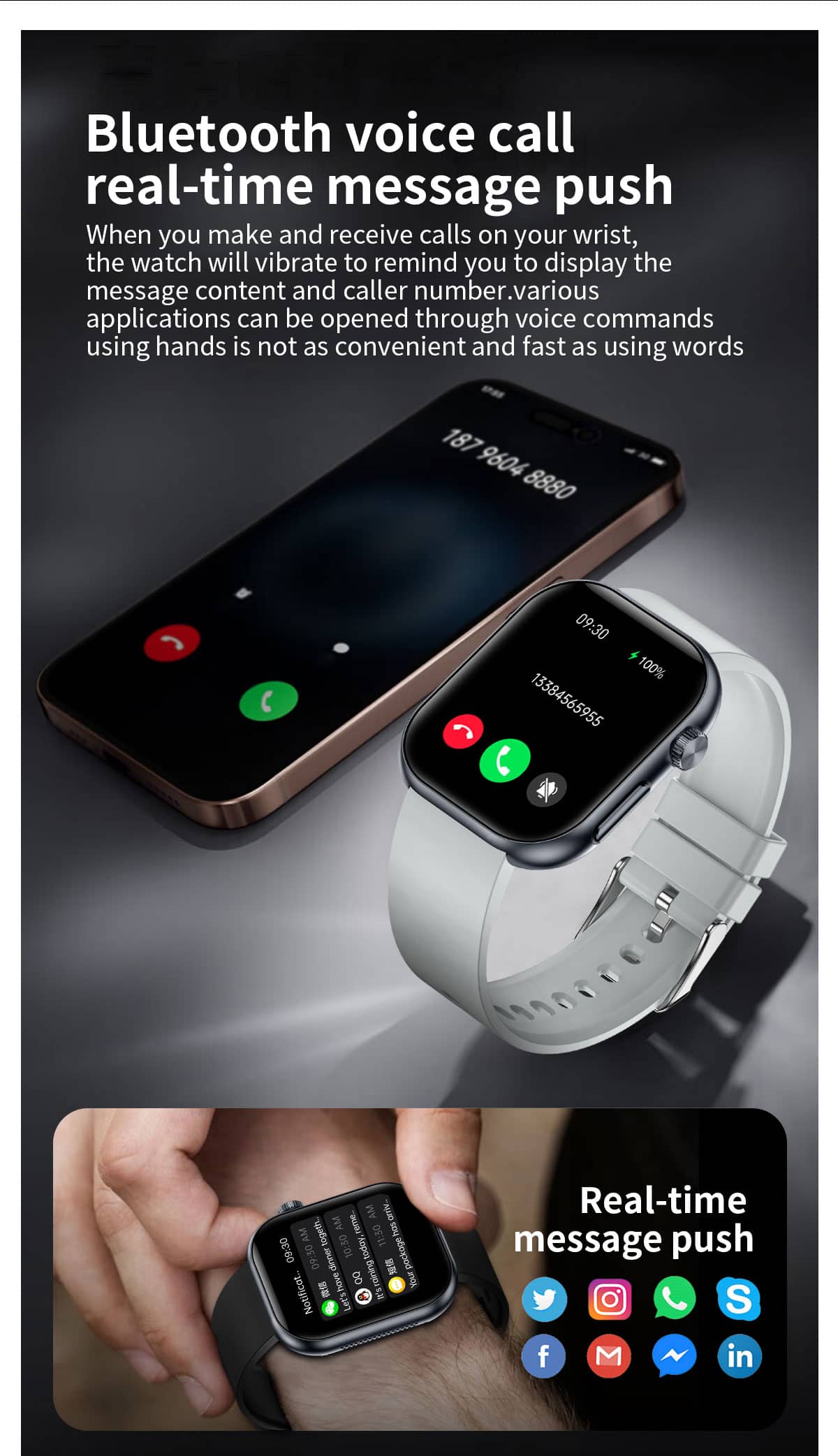 24/7 Continuous Heart Rate Monitoring to keep track of your heart activity throughout the day and night. Bluetooth call, give your life more freedom.