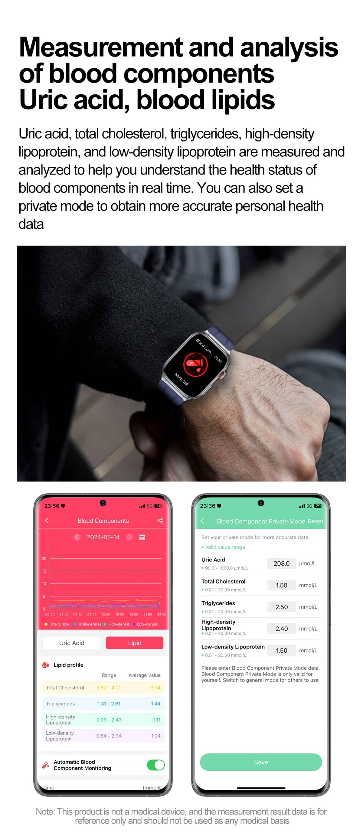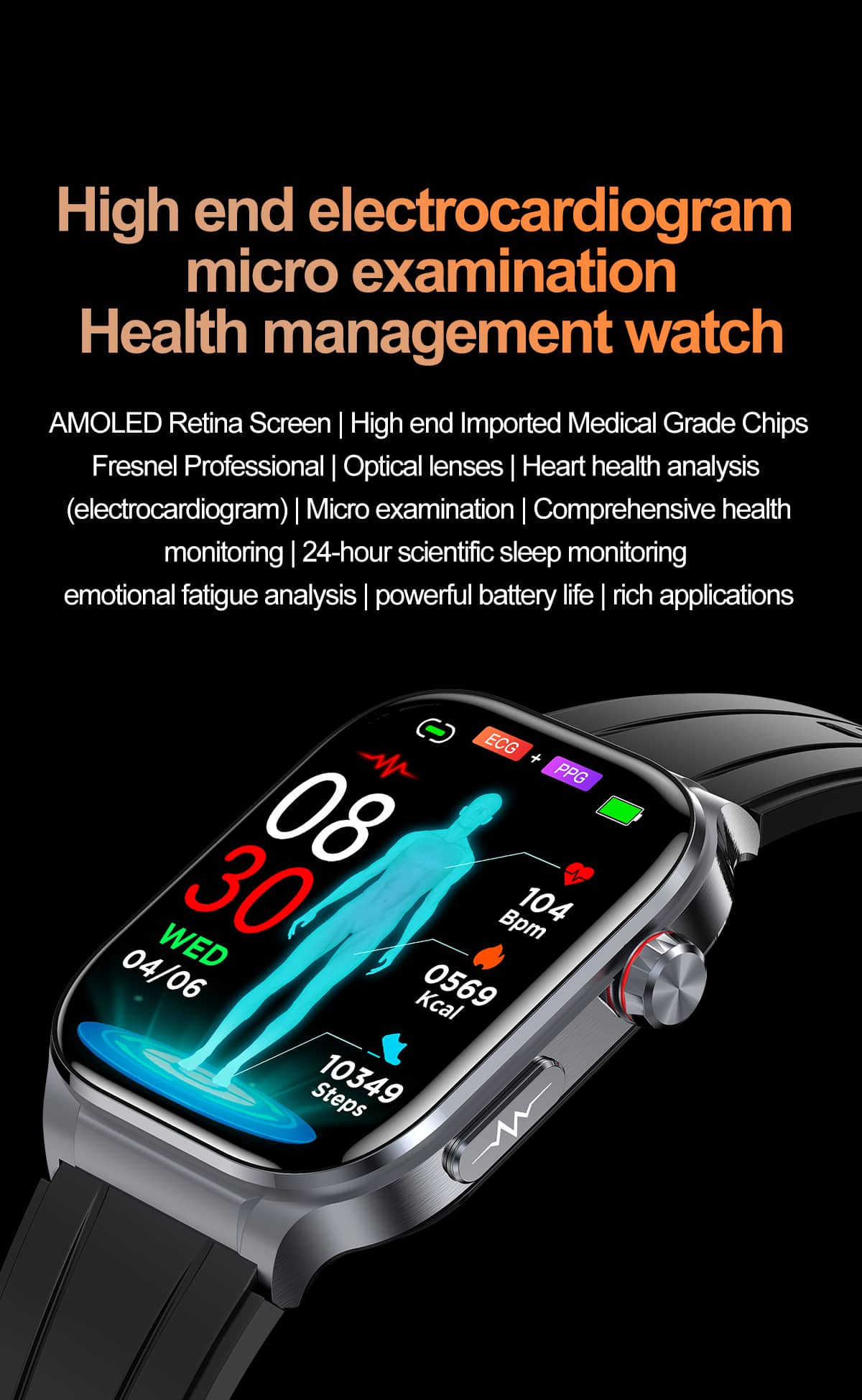 PH588 Professional High-End ECG/EKG HRV Blood Glucose Blood Pressure Heart Rate Health Management Watch