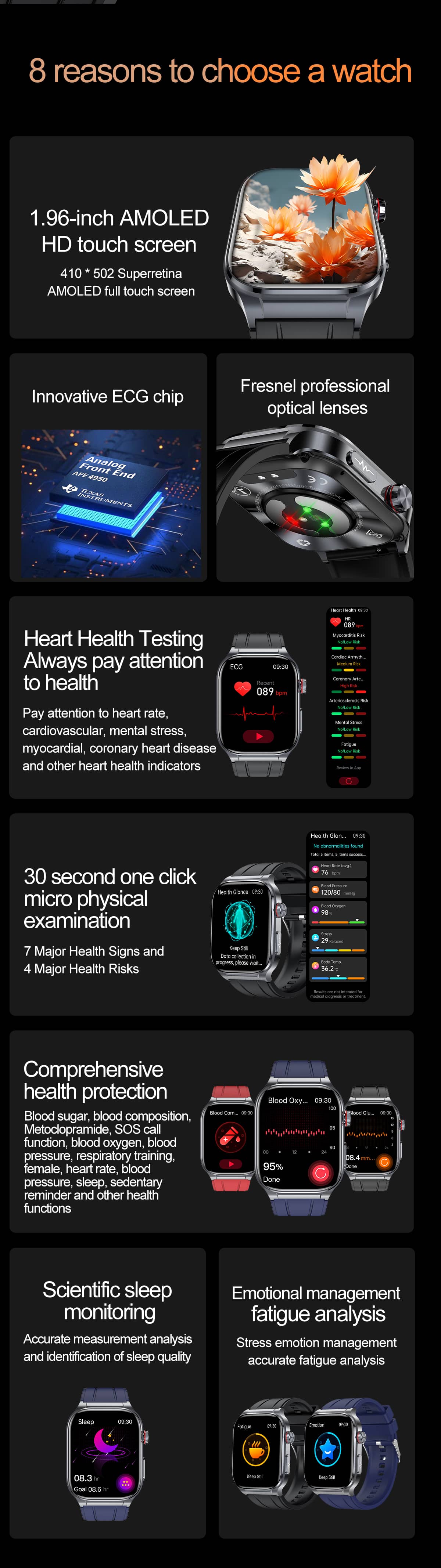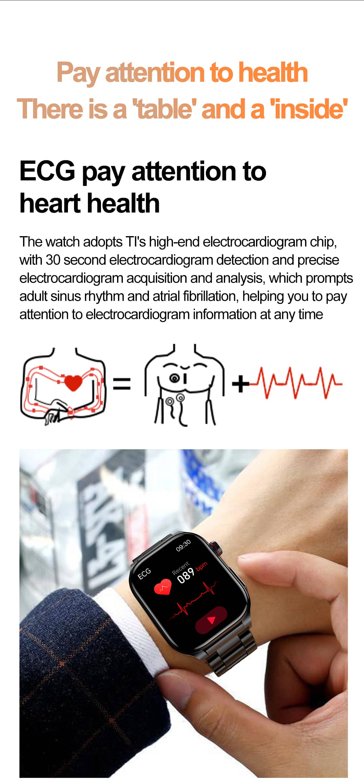 ❤️ Check Afib: The ECG Watch allows you to check for atrial fibrillation (Afib), which is an irregular heart rhythm that can lead to stroke or heart failure.