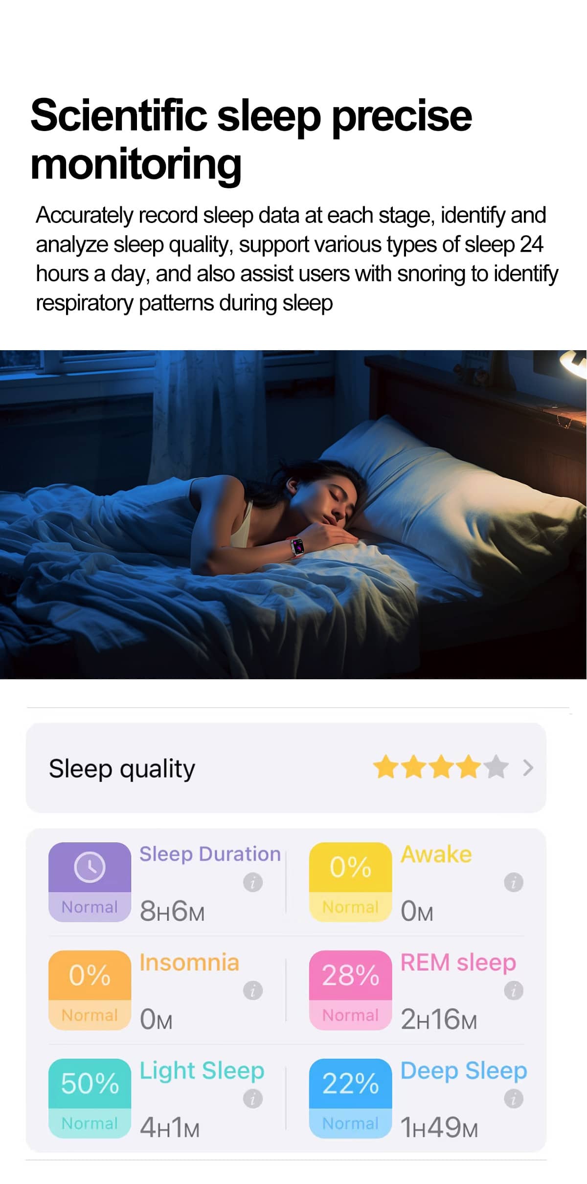 🔆24/7 Continuous Heart Rate Monitoring to keep track of your heart activity throughout the day and night.