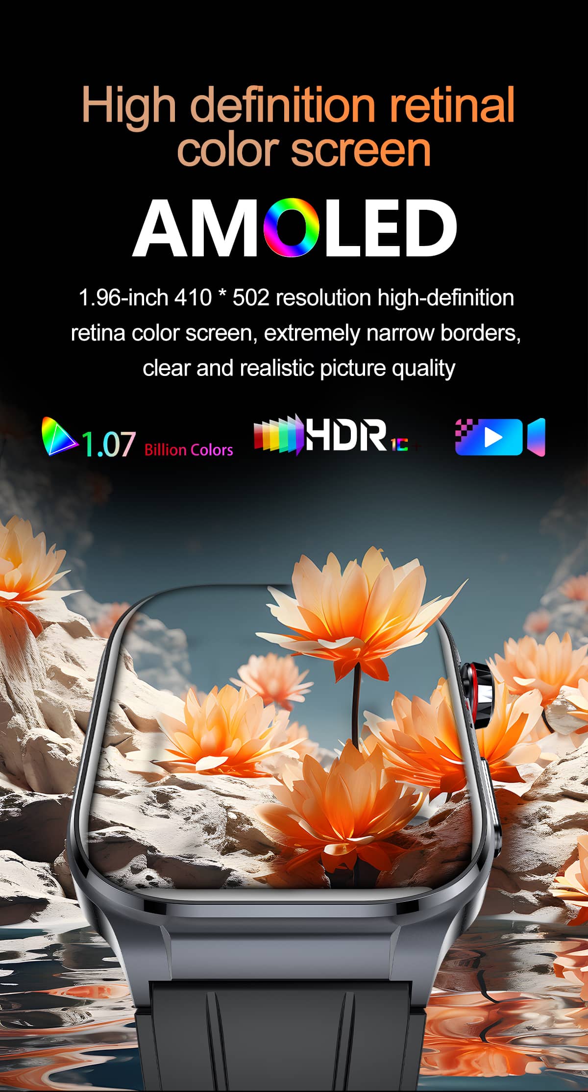 📱 Syncs seamlessly with both IOS and Android - no matter what phone you use, we got you covered, IP68 dustproof and waterproof. 1.96 " AMOLED Colorfuarge Screen.