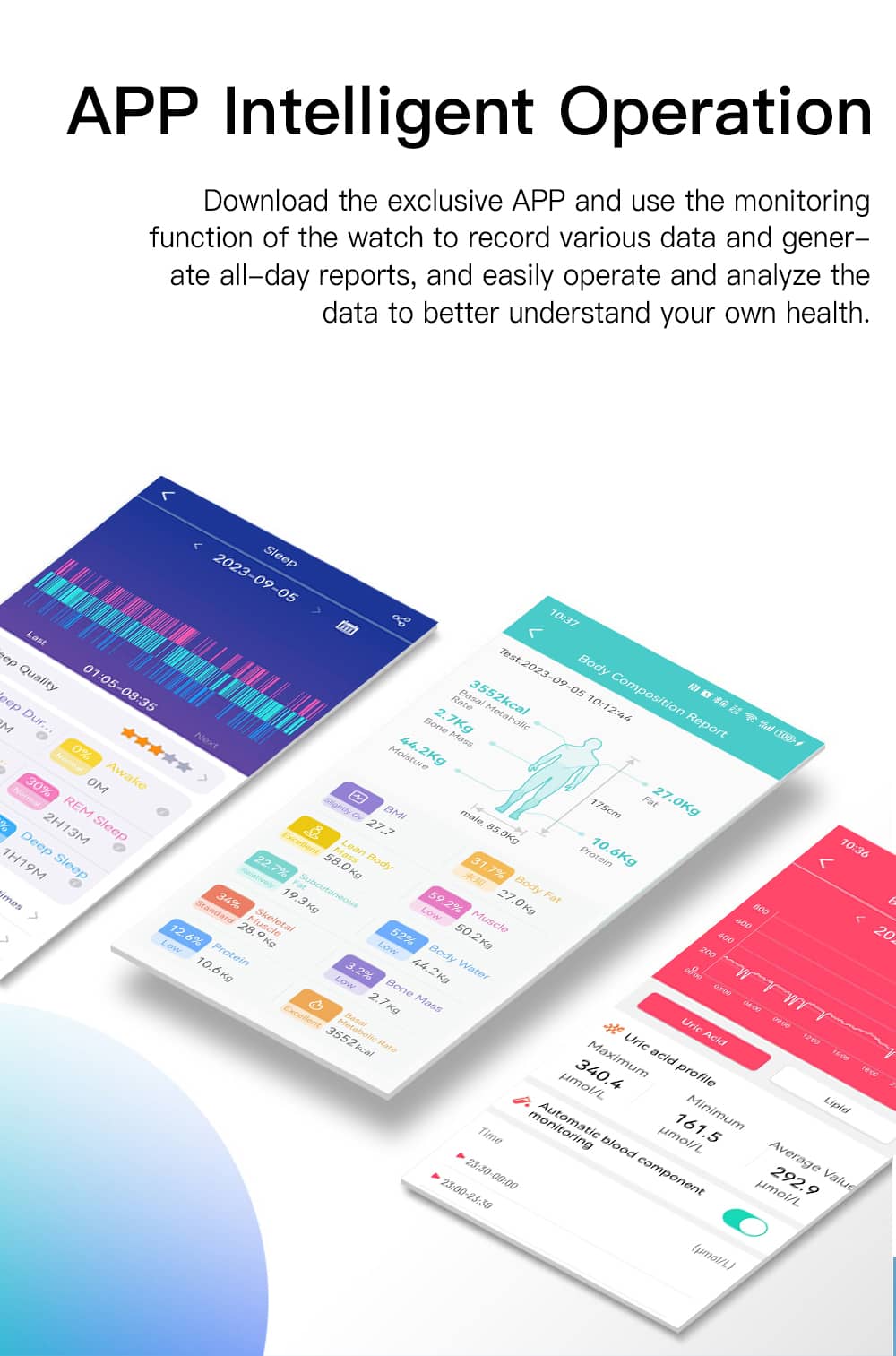 ️ Respiration Rate Monitor allows you to track your breathing patterns, detect any potential issues with your respiratory system, and take appropriate action to avoid any health complications.AI intelligent voice assistant