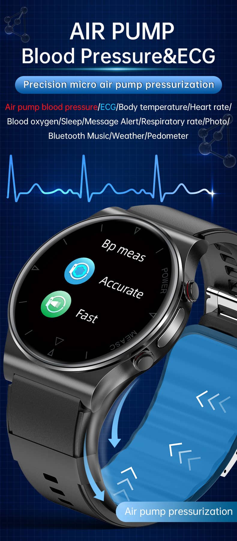 PH70 High Precision Air Bag Blood Pressure Smart Watch: