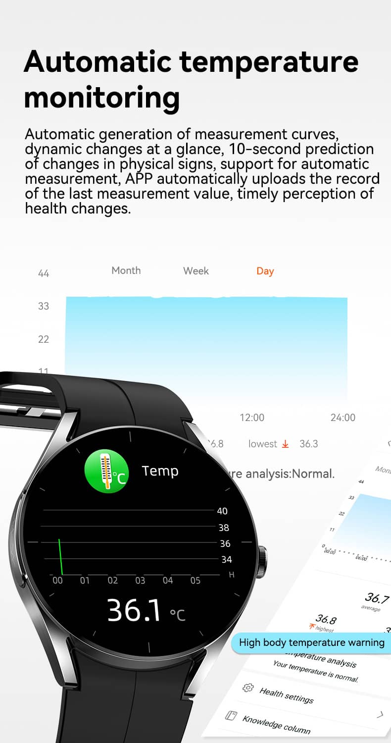 ️ Body Temperature Monitor helps you monitor changes in your body temperature, detect any potential fever, and take appropriate action to avoid any health complications.