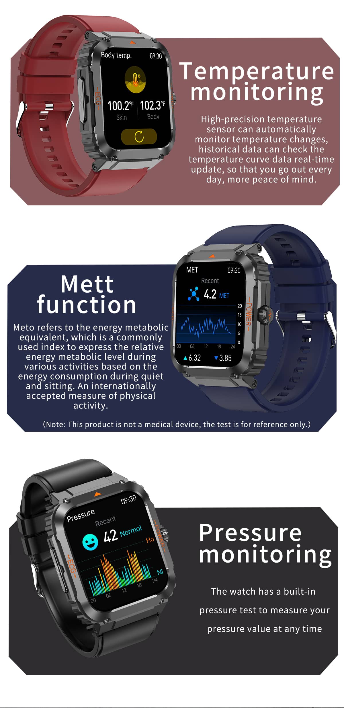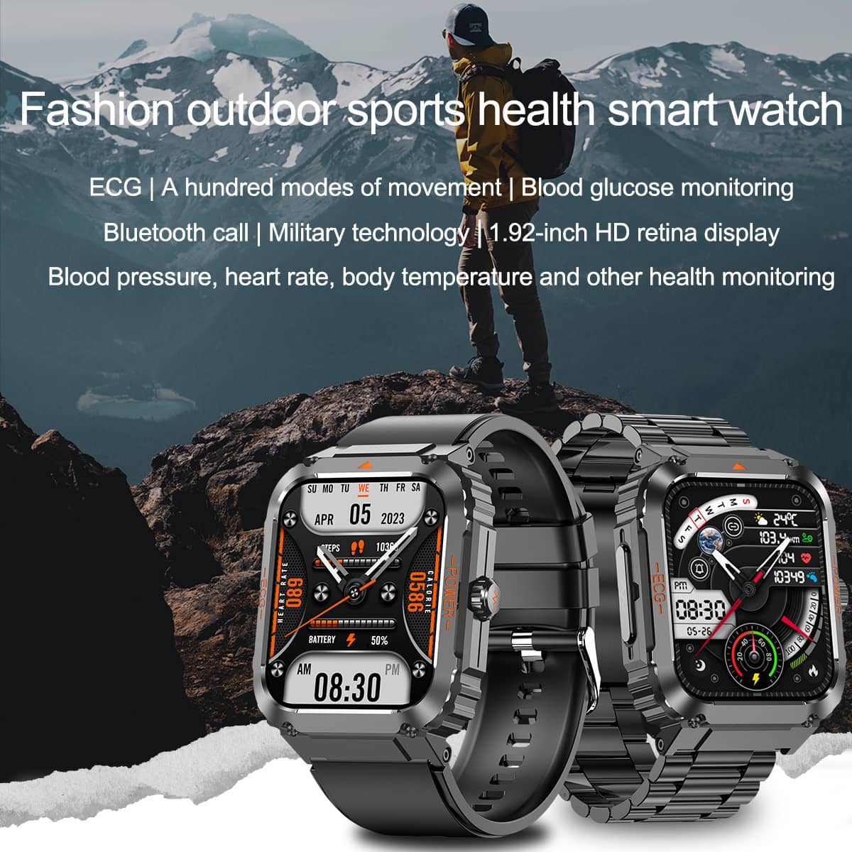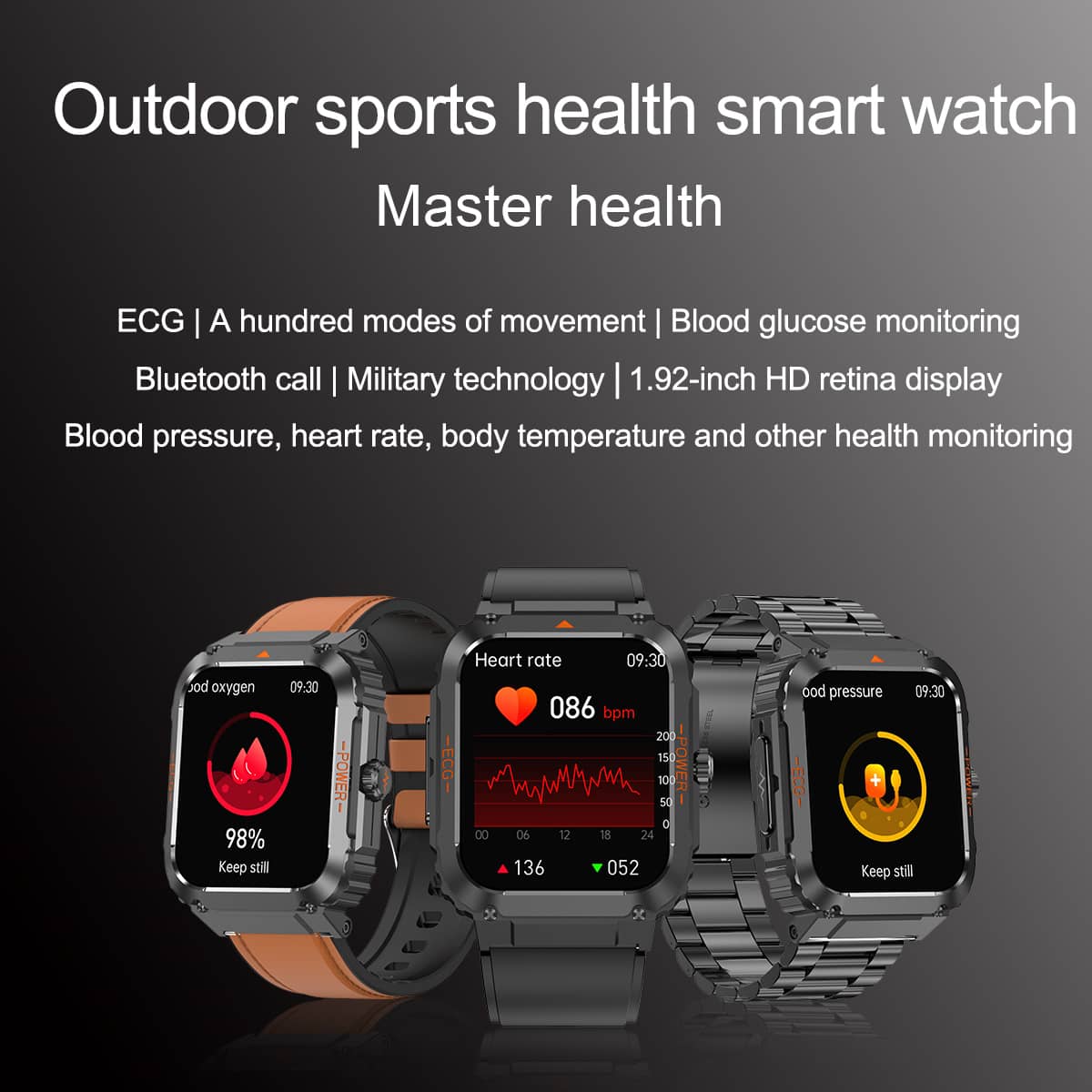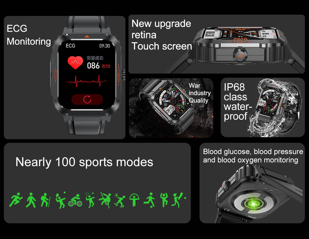 PH550 Fashion Outdoor Sports Health Smart Watch ECG/EKG Blood Glucose Bluetooth Call 100+ Sports Modes