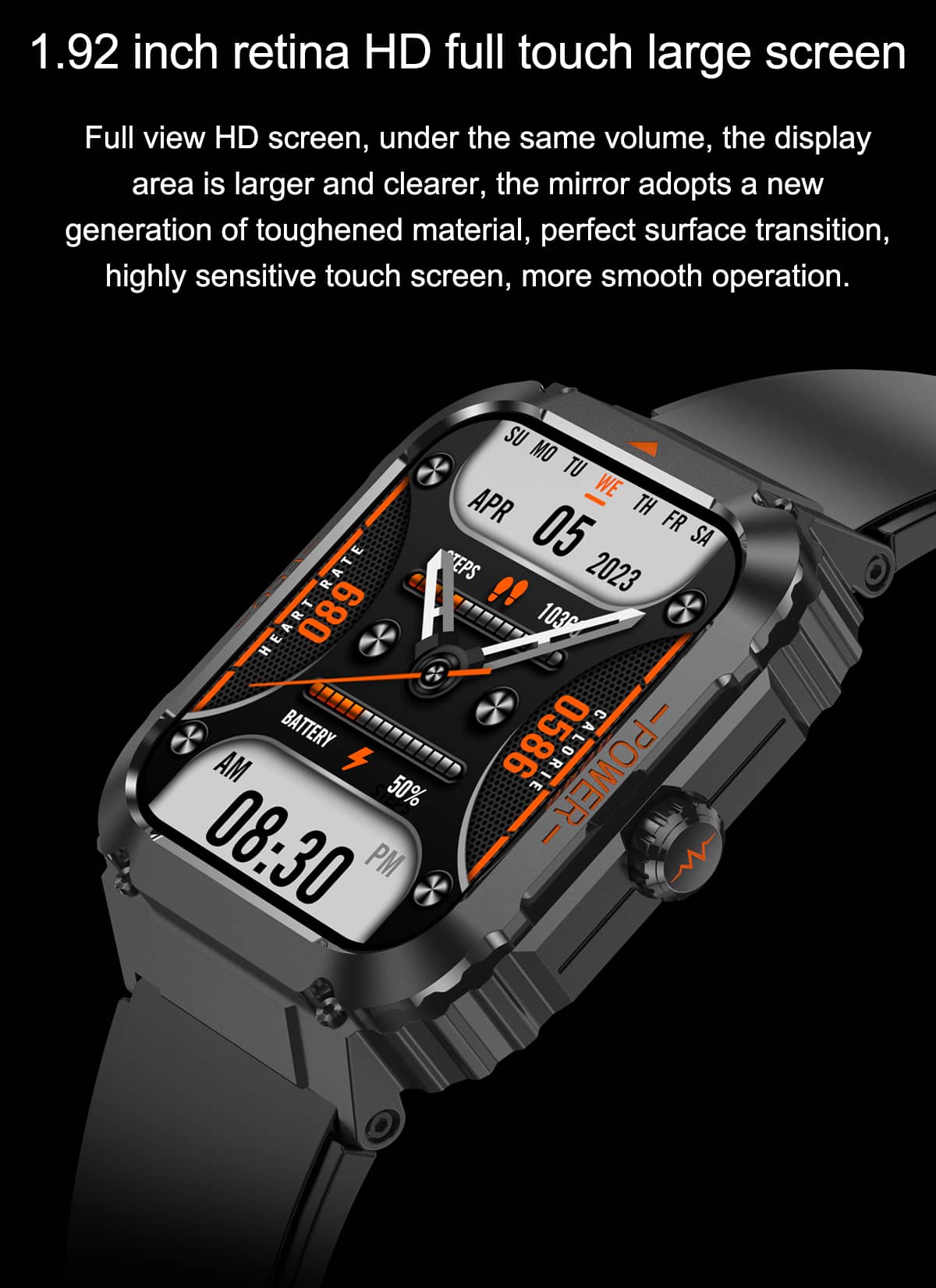 📱 Syncs seamlessly with both IOS and Android - no matter what phone you use, we got you covered.1 .92-inch retina HD full touch large screen, One-click link Bluetooth call,IP68 Waterproof.